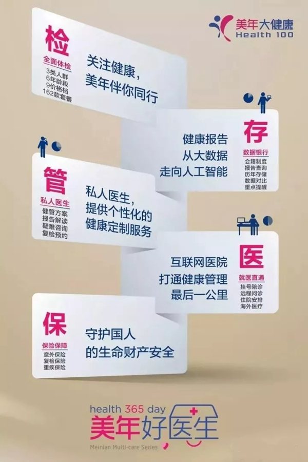 美年大健康推出的“檢、存、管、醫、保”一體式健康管理服務